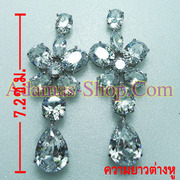 ขาย ต่างหูระย้ายาว แชนเดอเรีย ทรงดอกไม้ ยาว 7.2 ซ.ม.ประดับพลอยสีขาว ส่ง EMS ฟรีทั่วไทย