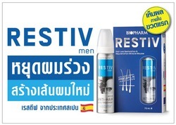 RESTIV MEN เรสทีฟ เมน นวัตกรรมใหม่ของการแก้ปัญหาผมบาง เส้นผมหลุดร่วงง่าย ด้วยสารสกัดจากธรรมชาติที่ออกฤทธิ์ได้เทียบเท่ากับการใช้ยา แต่ปลอดภัยกว่า สารออกฤทธิ์หลัก PROCAPIL-N ที่วิจัยคิดค้นในสถาบัน SEDERMA ลิขสิทธิ์จากประเทศฝรั่งเศส ช่วยลดการหลุดร่วงของเส้นผมอย่างเห็นได้ชัดเจนภายใน 3 สัปดาห์ ใช้ง่าย เพียงทานวดหนังศีรษะวันละ 1 ครั้ง สามารถใช้ได้ทั้งผมเปียกและผมแห้ง เนื้อมูสละเอียดเนียน กลิ่นหอม ไม่เหนียวเหนอะหนะ ไม่ต้องล้างออก การันตีเห็นผลภายในขวดแรก