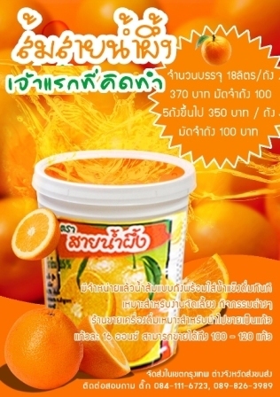 สนใจติดต่อสอบถาม หรือเป็นตัวแทนจำหน่ายโทรได้ 24 ชม. หรือขอทดลองชิมน้ำส้ม ฟรี !!!