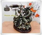 เชิญพบกับโทรศัพท์บ้านสไตล์วินเทจรูปทรงมังกรสัตว์แห่งแดนสวรรค์ ขนาด 280 mm. x 220 mm. x 250 mm. ใช้เรซิ่นเป็นวัสดุในการผลิตทั้งชิ้นงาน โดยผู้ออกแบบตั้งใจออกแบบให้เป็นของใช้และของแต่งบ้านเพื่อเป็นสง่าราศีและ แสดงถึงความมีพลังอำนาจและบารมีอันเป็นมงคลนำพาซิ่งความเจริญรุ่งเรืองทั้ง ความอุดมสมบูรณ์ และยศฐาบรรดาศักดิ์ โทรศัพท์โบราณเรือนนี้จึงมักถูกเลือกเป็นของขวัญที่เป็นของแต่งบ้านที่มัก มอบไปให้ผู้หลักผู้ใหญ่หรือเพื่อนที่คุณรักเพื่อเป็นความหมายดีๆ และสามารถใช้งานได้ในชีวิตประจำวันอันมีประโยชน์ ตำแหน่งการวางโทรศัพท์โบราณทรง มังกรให้วางในทิศตะวันออกเฉียงใต้ของอาคารร่วมกับภาชนะบรรจุน้ำจะช่วยให้มี โชคทางธุรกิจ การค้าจะไปสู่ความมั่งคั่งร่ำรวย สำหรับบริษัทและห้างร้าน ให้วางไว้ตรงทางเข้า ตรงประชาสัมพันธ์ต้อนรับลูกค้า โดยวางไว้ด้านขวามือเมื่อคุณเดินเข้ามา เป็นทั้งของขวัญและของแต่งบ้านที่เป็นสง่าและใช้ประโยชน์ได้ มีทั้งความสง่างามและเป็นมงคล เชิญชมสินค้าเพิ่มเติมได้ที่ http://i4you.ibuy.co.th/shop