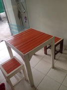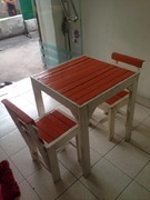 โต๊ะสี่เหลี่ยมสีส้ม พร้อมเก้าอี้ไม่มีพนักพิง สองตัว 1000 บาท