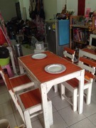 โต๊ะยาวสีส้ม พร้อมเก้าอี้ สี่ตัว 1500 บาท