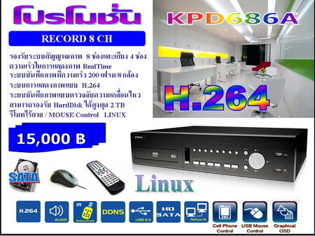 เครื่องบันทึกภาพ DVR AVTECH รุ่น KPD686 8/CH SATA 1 เครื่อง NEW H.264 CMS EagleEyes