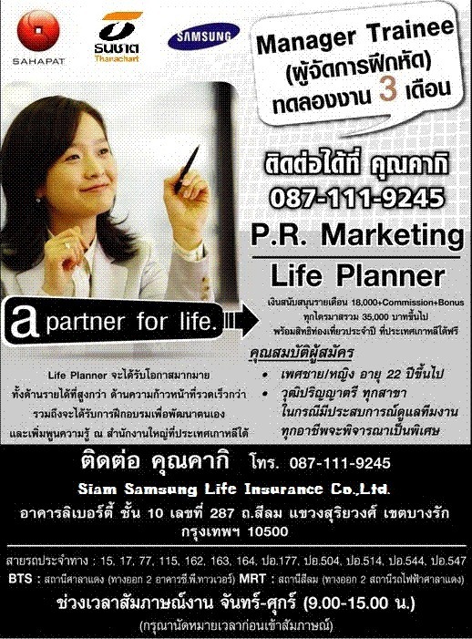 มีเงินสนับสนุนรายเดือน 18,000 บาท+Commission+Bonusรายไตรมาส+อบรมดูงานที่ซัมซุงประเทศเกาหลี 2 ครั้ง