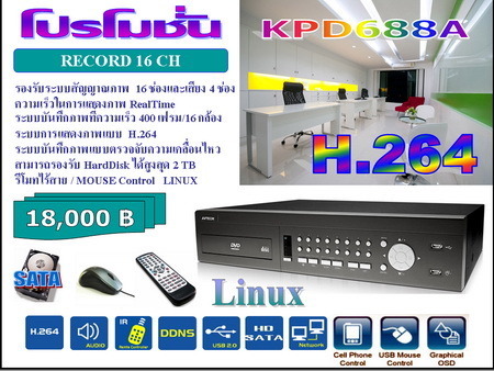 เครื่องบันทึกภาพ DVR AVTECH รุ่น KPD688A 16/CH SATA 1 เครื่อง NEW H.264
