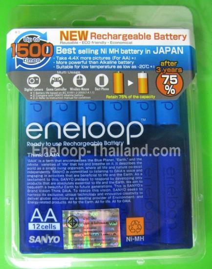 SANYO Eneloop AA pack 12 ก้อน ชาร์จ 1500 ครั้ง