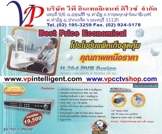 เครื่องบันทึกภาพ SMC608HD พร้อมกล้อง SMC913P หรือ SMC816P 8 ตัว ชุดโปรโมชั่นราคาพิเศษเหลือเพียง 19,500.-