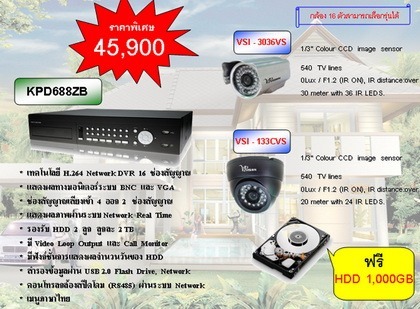 เครื่องบันทึกภาพ KPD688ZB พร้อมกล้อง VSI - 3036VS หรือ VSI - 133CVS 16 ตัว ชุดโปรโมชั่นราคาพิเศษเหลือเพียง 45,900.-