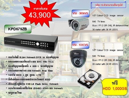 เครื่องบันทึกภาพ KPD679ZB พร้อมกล้อง VSI - 3036VS หรือ VSI - 133CVS 16 ตัว ชุดโปรโมชั่นราคาพิเศษเหลือเพียง 43,900.-