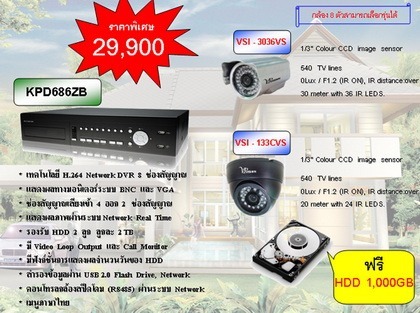 เครื่องบันทึกภาพ KPD686ZB พร้อมกล้อง VSI - 3036VS หรือ VSI - 133CVS 8 ตัว ชุดโปรโมชั่นราคาพิเศษเหลือเพียง 29,900.-