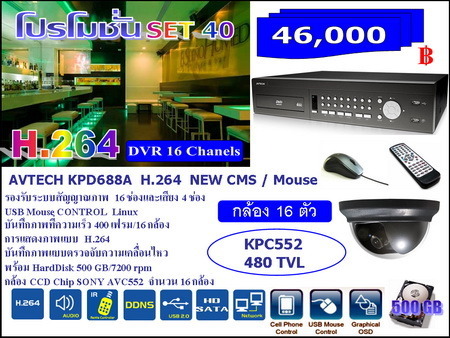 DVR AVTECH รุ่น 688 H.264 CMSUSB VGA CCD 16/CH พร้อมกล้อง 16/ตัว จำหน่ายเซทราคาพิเศษ!!!