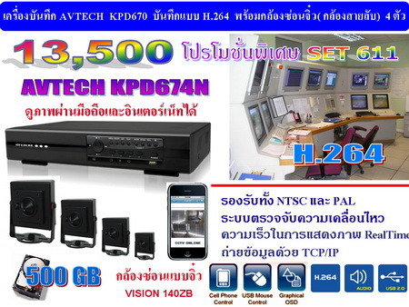 กล้องวงจรปิดตัวจิ๋วพร้อมกับเครื่องบันทึกภาพ DVR AVTECH รุ่นH.264 KPD674 ชุดโปรโมชั่นพิเศษ