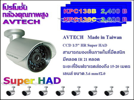 กล้องอินฟาเรด AVTECH Infrared 21 LED IR Camera 500 TVLines KPC138 พิเศษในราคาย่อมเยาว์ รายละเอียด KPC138B 2FEATURES High sensitivity in the dark environment, 0.4Lux / F2.0, 0Lux (IR ON)