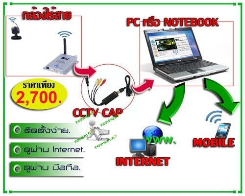 กล้องวงจรปิดแบบไร้สายบันทึกด้วยคอมพิวเตอร์ผ่าน USB Port ดูภาพสดๆผ่านNet,มือถือ ได้
