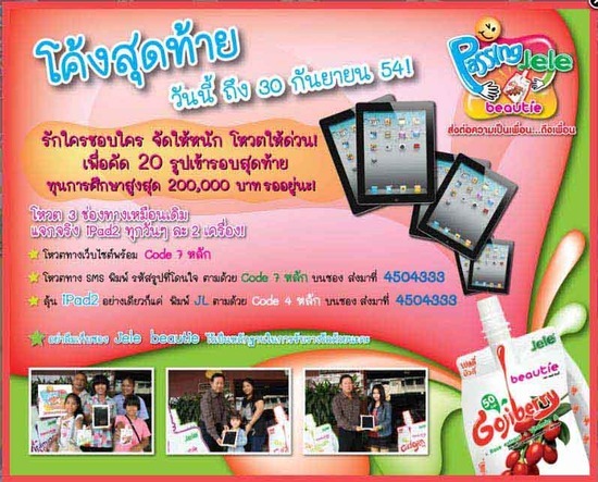 เจเล่ บิวตี้ แจก ipad2 ง่ายๆ เพียงโหวตหรัสบนซอง