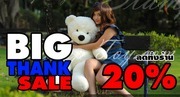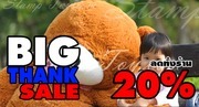 เทศกาลของขวัญ big thank sale ลดทั้งร้าน 20เปอร์เซ็นต์ นำเข้าและจำหน่ายตุ๊กตาหมีขนาด 1 เมตร ถึง 2 เมตร