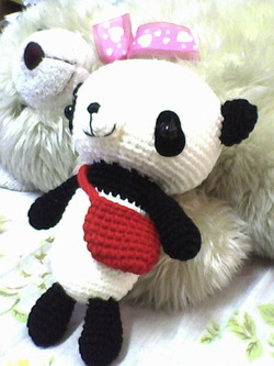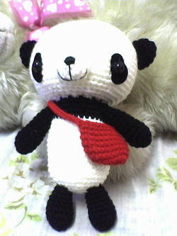 ตุ๊กตาถักหมีแพนด้า สูง 26 ซม. และรับงานตุ๊กตาถักตามออเดอร์ต่างๆ สนใจเข้าชมผลงานตัวอย่างที่เวบไซด์ http://www.bloggang.com/mainblog.php?id=gateau-crochet