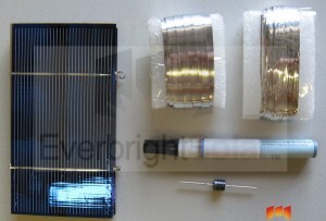 โซลาร์เซลล์: 40 ชิ้น 3X6 Solar Cells ,Short Tabbed แล้วทั้ง 2 ด้าน Cell Specifications: Average Power (Watts): 1.75 Wp Average Current (Amps): 3.5 Imax Average Voltage (Volts): 0.5 Vmax Thickness 200 μm = 0.2 mm ขนาดโซลาร์เซลล์: 3 1/4 inches x 6 inches, or 80 mm by 150 mm Weight: Just above 6 grams, or 0.2 oz. ประเทศผู้ผลิตโซลาร์เซลล์ : สหรัฐอเมริกา สำหรับนำไปผลิตแผงโซลาร์เซลล์ขนาด 60 วัตต์ ใช้โซลาร์เซลล์ 36 แผ่น สำรอง 4 แผ่น
