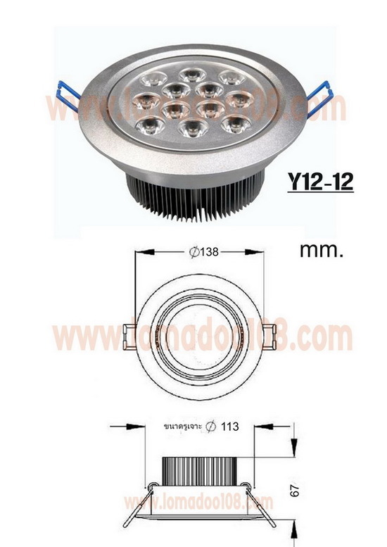 Downlight led 12x1W. รายละเอียด - ประกอบไปด้วยหลอด led ทั้งหมด 12 ดวง - ให้ความสว่าง 12w. (1w. เทียบเท่าหลอดฮาโลเจนประมาณ 10w.) - ประหยัดพลังงานกว่า 80 % ช่วยลดสภาวะโลกร้อน - เกิดความร้อนน้อยมาก แม้จะใช้งานเป็นเวลานานๆ - Input 220v. Output 12v. (สินค้ามาพร้อมหม้อแปลง) - มุมของแสง 30 องศา - อายุการใช้งาน 50,000 ชั่วโมง - วัสดุทำจากอลูมิเนียม ระบายความร้อนได้ดี - ใช้ติดตั้งภายในเท่านั้น - เหมาะสำหรับ ติดตั้งฝ้าเพดาน ที่อยู่อาศัย อาคารสำนักงาน ห้องประชุม หรือ ตู้โชว์สินค้า เฟอร์นิเจอร์บิ้วอินทั่วไป - มีแสงสี Daylight(แสงขาว)และ Warmwhite(แสงเหลือง) - D=138 mm. H=67 mm. ชนาดรูเจาะ= 113 mm. - น้ำหนัก 660 กรัม สนใจติดต่อ