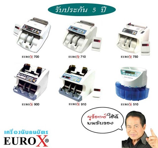 7.เครื่องนับเงิน Eurox รับประกัน 5 ปี เครื่องเสียมีเครื่องสำรองให้ใช้