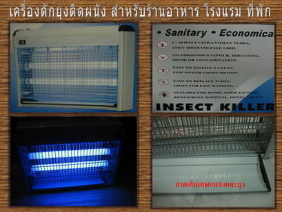 เครื่องดักยุงและแมลงแบบติดผนัง เครื่องดักยุงและแมลงแบบติดผนังโดยใช้ไฟล่อและช็อต เหมาะกับสถานที่กว้างๆเช่น ร้านอาหาร โรงแรม โรงอาหาร ที่พักอาศัย หลัก การโดยใช้แสงแบล็คไลท์ชนิดล่อยุง และแมลงให้เข้ามาหาและถูกช๊อตตายในที่สุด มีถาดรองเศษแมลงด้านล่าง ทำความสะอาดได้สะดวก คุณสมบัติเด่น คือปลอดสารพิษ ติดตั้งง่าย หลอดล่อยุงมีความทนทาน มี2ขนาดให้เลือก ขนาดเล็ก 20 w ยาวประมาณ 48 สูง 35 ซม เหมาะกับพื้นที่ 30-60 ตรม. ขนาดใหญ่ 40 w ยาวประมาณ 67 สูง35 ซม.เหมาะกับพื้นที่ 50-80 ตรม.ราคาขนาดเล็ก 1800 บาท ขนาดใหญ่ 2500 บาท ติดต่อคิ้ม 0866296335 ดูสินค้าอื่นเราได้ที่ http://shop.be2hand.com/cybermart">http://shop.be2hand.com/cybermart