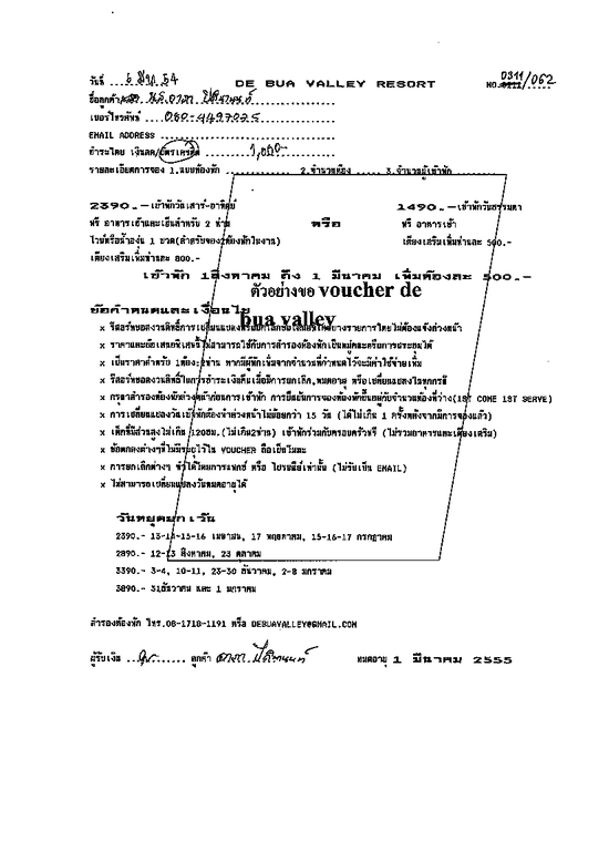 ขาย voucher มัดจำ 1000 บาท De Bua Valley Resort วังน้ำเขียว