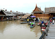 13.00 น. นำทุกท่านออกเดินทางเข้าชมและเลือกซื้อของที่ ตลาดน้ำ 4 ภาค เป็นสถานที่ช็อปปิ้งแห่งใหม่ยิ่งใหญ่ อลังการ ภายในตลาดจัดของดีมีชื่อเสียงแต่ละเมืองมาวางขาย หากเป็นเสื้อผ้าจะวางขายอยู่บนเรือนไม้ ถ้าเป็นอาหารคาวหวาน ให้ชาวบ้านนำเรือเข้ามาพายรอบละ 72 ลำ เป็นเรือแท็กซี่ 40 ลำ