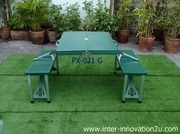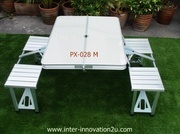 บริษัท อินเตอร์ อินโนเวชั่น จำกัด โต๊ะปิคนิก โต๊ะสนาม พับเก็บง่ายเคลื่อนย้ายสะดวก เหมาะกับผู้ที่ชอบเดินทาง สามารถพกพาใส่รถ และกางออกเมื่อต้องการใช้งาน ได้ในเวลารวดเร็ว หรือใช้ในบ้านที่มี พื้นที่จำกัด หรือมีงานเลี้ยงที่ต้องการความสะดวกในการเก็บเมื่อไม่ต้องการใช้งาน ตรงกลาง มีช่องสำหรับเสียบร่ม กันแดดได้ วัสดุที่ใช้ มีทั้งอลูมิเนียมทั้งตัว, พลาสติก ABS,วัสดุทนความร้อน MDF สามารถวางหม้อสนามได้ รับน้ำหนักได้ที่นั่งละ 100 kg.
