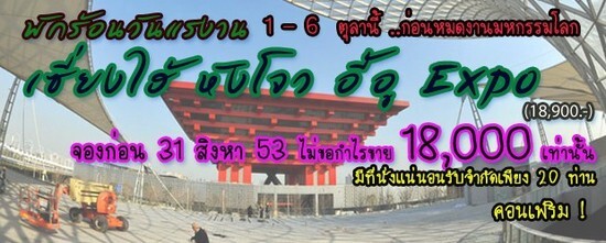 หากไม่เข้าเที่ยวชมงาน http://www.ilastdeal.com/archives/%E0%B8%97%E0%B8%B1%E0%B8%A7%E0%B8%A3%E0%B9%8C%E0%B9%80%E0%B8%8B%E0%B8%B5%E0%B9%88%E0%B8%A2%E0%B8%87%E0%B9%84%E0%B8%AE%E0%B9%89-expo">Shanghai World Expo 2010 ราคาเพียง 17,000 บาทเท่านั้น กำหนดวันเดินทาง วันที่ 1-6 ตุลาคม 2553