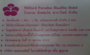 voucher ห้องพัก 1 คืน พร้อมอาหารเช้า 2ท่าน ณ โรงแรม มิลฟอร์ด พาราไดซ์ หัวหิน Milford Paradise HuaHin Hotel บัตรใช้ได้ถึง 31 ต.ค. 53 สนใจติดต่อ บูลย์ 0865076722