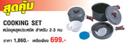 อุปกรณ์เดินป่า หลากหลายชนิด ราคาโปรโมชั่น เต็นท์ ชนิดต่าง ๆ หลากหลาย อุปกรณ์หุงต้มเดินป่า ราคาโปรโมชั่น เต็นท์ FORESTER 5.5 ราคา 4700 ขาย 1790 เต็นท์ FORESTER 8 ราคา 4700 ขาย 1890 เต็นท์ SEA BREEZE ราคา 2500 ขาย 699 เต็นท์ SCOUT ราคา 4800 ขาย 2500 COOKING SET .1-2 ราคา 1250 ขาย 499 COOKING SET .2-3 ราคา 1860 ขาย 699 ถุงนอน 150 กรัม ราคา 900 ขาย 279 ถุงนอน 200 กรัม ราคา 1050 ขาย 299