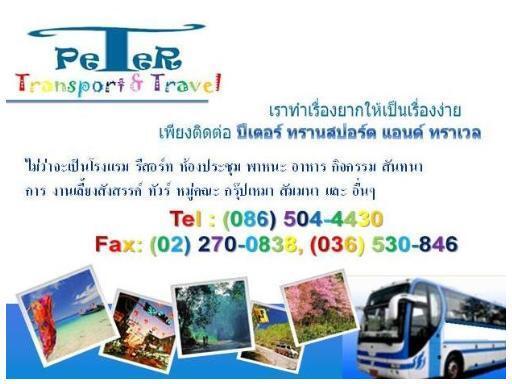 ที่ ปีเตอร์ทรานสปอร์ต แอนด์ ทราเวล ( Bangkok Office ) 02-270-0838 , 086-504-4430