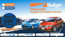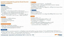 ********** บริษัท BUDGET ********** - ราคาใบละ 690 บาท ราคารวม vat แล้ว + ประกันภัยเบื้องต้น - คูปองราคา 690บาท สำหรับการใช้ จันทร์-พฤหัส และสามารถใช้ในวันศุกร์ เสาร์ อาทิตย์ โดยจ่ายเพิ่มกับบริษัทเพียง 170 บาท / คูปอง 1 ใบ - คูปองสามารถใช้ได้ในวันหยุดนักขัตฤกษ์ - หมดอายุปีหน้า (17 พค 2553) - คูปองนี้ไม่ต้องเสียอะไรเพิ่มแล้ว จองรถกับ call center และยื่น voucher ให้พนักงานเมื่อรับรถที่สาขาได้ทันที - คูปอง 1 ใบสำหรับการใช้หนึ่งวัน (นับ 24 ชม จากเวลารับรถ) - เว็ปไซต์ ฺBUDGET http://www.budget.co.th/">http://www.budget.co.th - ลองโทรไปถาม call center ที่เบอร์ 02-2030250 ว่ามีรถว่างในวันที่ต้องการใช้งานก่อนหรือไม่ก็ได้ค่ะ - คุณสมบัติผู้ขับรถต้องมีอายุ 20 ขึ้นไป ผู้ไปทำสัญญาในวันรับรถต้องมีบัตรเครดิตที่มีวงเงินอย่างน้อย 20,000 บาท (ผู้ขับขี่และผู้ทำสัญญาไม่จำเป็นต้องเป็นท่านเดียวกัน) - ดูรายละเอียดด้านหลังคูปองตามรูปที่สองได้ค่ะ ===================================================== การส่งของ 1. โอนเงินเข้าบัญชีไทยพาณิชย์ จากนั้นทางเราจะส่ง voucher ให้ทันที ค่าส่ง 30 บาท เมื่อส่งไปรษณีย์แล้วเราจะส่ง tracking no. ของไปรษณีย์ให้ตรวจสอบสถานะผ่านเว็ปไซต์ของไปรษณีย์ได้ค่ะ 2. หรือ สามารถมารับด้วยตัวเองได้แถวจัสโก้รัชดา (รถใต้ดินผ่าน สถานีศูนย์วัฒนธรรม ทางออกที่ 4) ในวันจันทร์ถึงศุกร์ เวลา 7.30-8.30 และ 12.00-13.00 สนใจติดต่อ 083-9974121