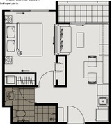 ห้องไม่มีอาคารสูงปิดกั้น อยู่ที่อาคาร X ชั้น 15 ขนาด 1 ห้องนอน 1 ห้องนั่งเล่น 1 ห้องน้ำ ขนาด 35.36 ตารางเมตร ด้านหลังที่ระเบียงห้องโล่งไม่มีตึกหรือบ้านบัง และไม่มีแสงแดดเข้าทั้งเช้า บ่าย และเย็น