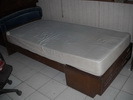 เตียงไม้ หัวเตียงเป็นไม้อัดบุกำมะหยี่ โครงเตียงเป็นไม้เนื้อแข็ง