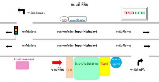 ที่ดินตั้งอยู่ในเขตพื้นที่ อำเภอแม่จัน จังหวัดเชียงราย ติดกับถนนพหลโยธิน เหมาะสำหรับผู้ที่ต้องการซื้อเพื่อประกอบธุรกิจหรือประกอบกิจการ เพราะสะดวกในการใช้เส้นทางสันจรไปมาระหว่าง อำเภอแม่สาย อำเภอเชียงแสน อำเภอแม่จัน และ จังหวัดเชียงราย มีรถประจำทางผ่านทุกๆ 10 – 15 นาที