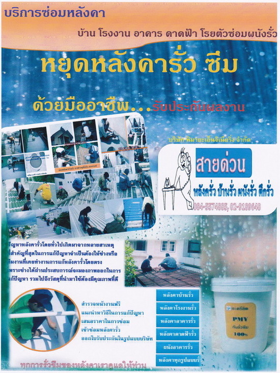 บริการซ่อมหลังคารั่ว ดาดฟ้ารั่ว โรงงานรั่ว บ้านหลังคารั่ว ผนังรั่ว หลังคารั่วทุกรูปแบบ