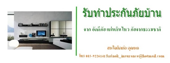 รับทำประกันภัย บ้านไม้ รีสอร์ท โรงแรม คอนโด ผับ เทค ร้านอาหาร ท่านจะได้ความคุ้มครองจากภัยต่างๆ เช่น ภัยจากน้ำท่วม น้ำป่า พายุ แผ่นดินไหว รถชนเสียหาย เครื่องใช้ไฟฟ้าในบ้าน ทรัพย์สินต่างๆ ติดผ่อนสถาบันการเงินก็สามารถซื้อภัยเพิ่มได้ โทรมาคุยและขอทราบค่าเบี้ยที่โทร . 085-9226141 นก