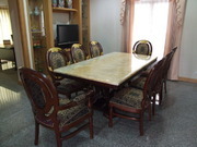 ขาย ชุดโต๊ะอาหารสี่เหลี่ยม หินอ่อนแท้ ขนาด(มงคล) ก.108xย.198 เก้าอี้ท้าวแขน-2 ตัว เก้าอี้ไม่ท้าวแขน-6 ตัว ราคา-55,000บาท (ราคาต่อรองได้)