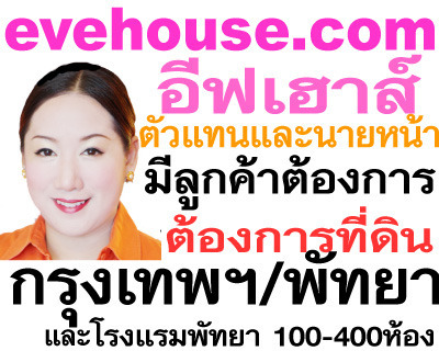 EveHouseมีลูกค้าต้องการซื้อที่ดินกรุงเทพฯปริมณฑล20-80ไร่ /พัทยา3-10ไร่/โรงแรมพัทยา 100-400ห้อง EveHouse เป็น real estate agency ค่ะ ตั้งอยู่ 25/5 สุขุมวิท16 ([บ้านสีชมพูตรงข้าม FoodLand)