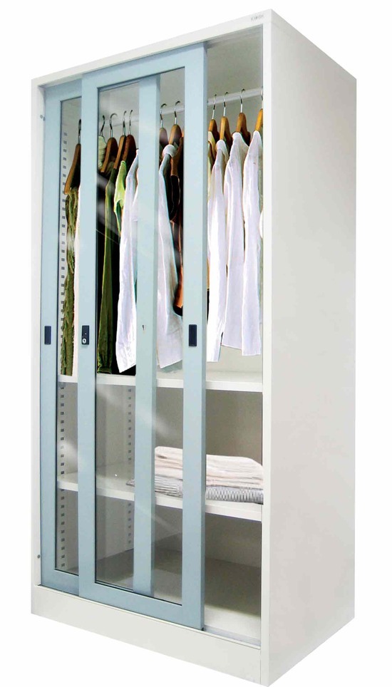 ตู้เสื้อผ้าเหล็กหบานเลื่อนกระจก แบรนด์ Kiosk ใหม่เอี่ยมจากโรงงาน