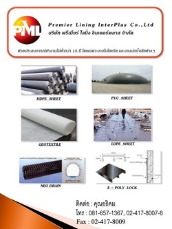จำหน่ายและติดตั้ง แผ่นพลาสติก HDPE / PVC / และแผ่นใยสังเคราะห์ GEOTEXTILE ทั้งในและต่างประเทศ ใช้ในงานประเภท งานบ่อกักเก็บน้ำดี / น้ำเสีย งานบ่อขยะ งานบ่อแก๊ส งานบ่อเก็บกากอุตสาหกรรม งานปูรองกันซึม งานบ่อเหมืองแร่