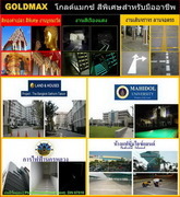 - ช่วยประหยัด ทินเนอร์ มากกว่า 50 % เหมาะกับงานพ่นสีผนัง ฝ้า เพดาน พื้น โครงเหล็ก ทั้งภายใน และภายนอก อาคารขนาดใหญ่ บ้าน โรงแรม คอนโดมีเนียม อพาร์ทเม้นท์ ได้ทั้งงานพื้นคอนกรีต ผนังไม้ เหล็ก และพื้นผิวอื่น ๆ รับตีเส้นจราจร ตีเส้น ทาสีลานจอดรถ ทาสีทางหนีไฟ ตีเส้นสีเรืองแสง (Glow In The Dark) Ultra-Glow สีสะท้อนแสง ทั้งชนิดโรยลูกแก้ว (Reflective Glass bead) และสีสะท้อนแสง (Micro reflective Top Coat) ตามช่องทางเดินเหมาะสำหรับงาน สีด้านความปลอดภัย ตีเส้นทางเดิน ขั้นและราวบรรได ทางหนีไฟ กรอบชี้บอกตำแหน่งอุปกรณ์ความปลอดภัย ต่าง ๆ บริเวณลานจอดรถ ภายในโรงงาน โกดัง และอาคารต่าง ๆ เพื่อความปลอดภัยในการสัญจร " ผลงานเป็นทีไว้วางใจ และยอมรับจาก การไฟฟ้านครหลวง , มหาวิทยาลัย มหิดล , Land & House , Fashion Island , Avon Cosmetics และโรงงาน อาคารต่าง ๆ ในการทาสีเรืองแสง และสีสะท้อนแสงทาทับหน้า ทั้งชนิดโรยลูกแก้ว (Reflective Glass bead) และสีสะท้อนแสง (Micro Reflective Top Coat) " " โกลด์แมกซ์ สีพิเศษสำหรับมืออาชีพ รับประกัน คุณภาพสินค้า และความพอใจ " อื่น ๆ สีทองคำเปลวอะครีลิค สีมุก เฉดสีพิเศษ ตามความต้องการ บริการให้คำปรึกษาทางเทคนิค รับเหมางานพ่นทำสีองค์พระ งานทาสีโบสถ์ ศาลา วิหาร และงานบูรณะต่าง ๆ งานตบแต่งภายใน และภายนอก สำหรับงานตบแต่งภายใน และภายนอก อาคารโรงแรม รีสอร์ท ต่าง ๆ โดยเป็นช่างที่ชำนาญเทคนิค ระบบสีโกลด์แมกซ์ กลุ่มผลิตภัณฑ์สีโกลด์แมกซ์