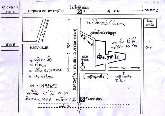 2 . ขายที่ดินสร้างโรงงาน ถมแล้ว 60 ไร่ ทั้งหมด 77 ไร่ ไร่ละ 1.5 ล้าน ต.นาดี (บางปิ้ง) ท่าทราย อ.เมืองสมุทรสาคร ถมแล้ว 60 ไร่ ทั้งหมด 77 ไร่