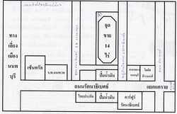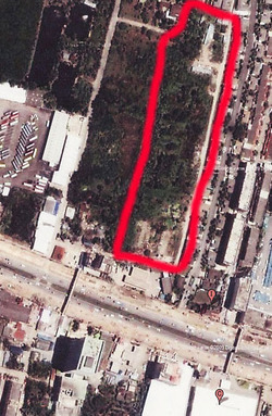 ฝั่งตรงข้ามเยื้องกับห้างคาฟูร์สาขารัตนาธิเบศธ์ ที่ดินนี้มีขนาด 14 ไร่