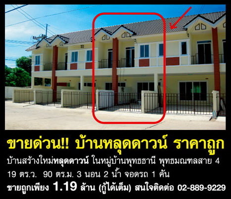 ขายด่วนบ้านหลุดดาวน์ ราคาถูก1.19ล้าน ติดถนนพุทธมณฑลสาย4