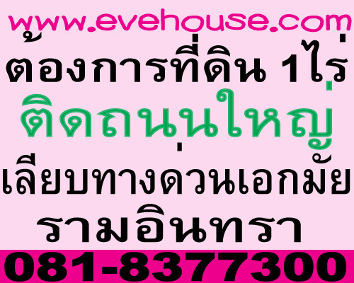 มีลูกค้าต้องการซื้อที่ดิน 1 ไร่ ติดถนนใหญ่เลียบทางด่วนเอกมัย-รามอินทรา โดย Evehouse agent