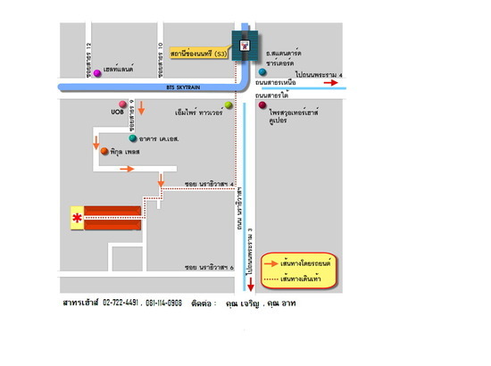 3. เดิน: เข้าทาง ถนน นราธิวาสฯ ซอย 4 เพียง 200 เมตร