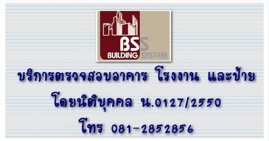 ต้องการใบสนอราคา ตรวจสอบอาคาร โดย บริษัท บีเอสเอส บิวดิ้ง ซิสเต็ม จำกัด นิติบุคคลผู้ตรวจสอบอาคาร เลขทะเบียน น.0127/2550 ติดต่อได้ทันที 02-7200222 หรือ [email protected] ยินดีให้บริการค่ะ