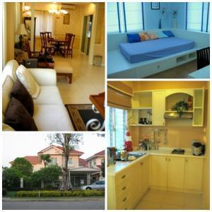 Located in the new community– Perfect Park Ramkhamhaeng 164, previously was a show unit, this fully furnished house is for rent at 30k per month, or sale at 5 mil. It is 2-storey featuring 3 bed-, 2 bath-room, 2 parking lots and a working room. All room are finished with custom made built in furniture and contemporary loose furniture. 6 air-cons, cable TV, true vision, telephone, refrigerator, washing machine, water heater, security system and fully equipped kitchen are provided . Easy access, the guard is at the front. The land area is 68 sq wah. Nice, clean, and quiet with garden and waterfall. Ready to move in. Call 089 488 6690